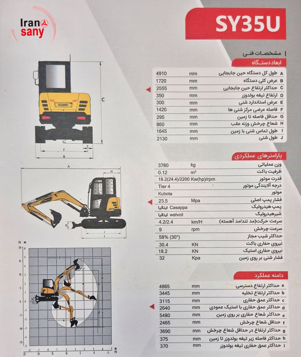 مشخصات مینی بیل سانی مدل SY35U چیست؟